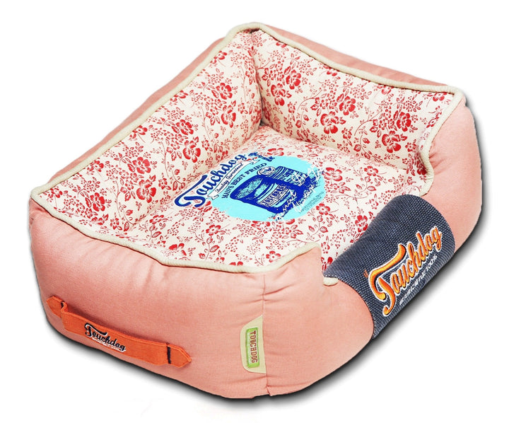 The Touchdog Floral-Galore Vintage printed Ultra-Plush Rectangular Designer Dog Bed is composed of a cotton-polyester outer shell and a reversible and removable inner dog cushion. The cushion has the ability to zip open for machine wash placement of the inner polyfill contents. Features a trendy 1960's floral-like design pattern on the outside with a beautiful vintage print design on the cushion with the Touchdog Embroidered stamp of perfection on the frontal lip. Composed of a higher-grade level of poly-fill for superior plush. This dog bed features a side handle for ease of mobility when carrying. Available in multiple colors.