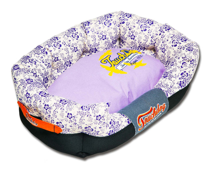 Features a trendy 1960's Floral-like design pattern on the outside with a beautiful print design on the cushion and the Touchdog® Embroidered stamp of perfection on the frontal lip. Composed of a Higher-Grade level of Poly-Fill for superior plush. Features a Nylon side handle for ease of mobility when carrying.