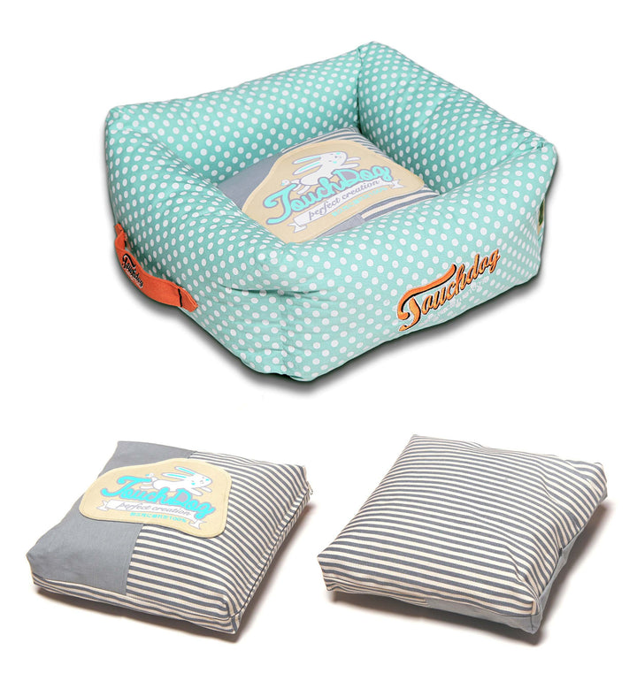 Featuring a squared look and accented thick stitching along the upper rim with the Touchdog® Embroidered stamp of perfection along the front with a complimentary Polka-Striped Print on the accented Removable and Reversible Polyester-Fleece thick plush cushion. Every intricate detail is designer coordinated to compliment. Completed with a built-in side carrying handlebar. Touchdog®, the leading Premium Pet Brand of Tomorrow.