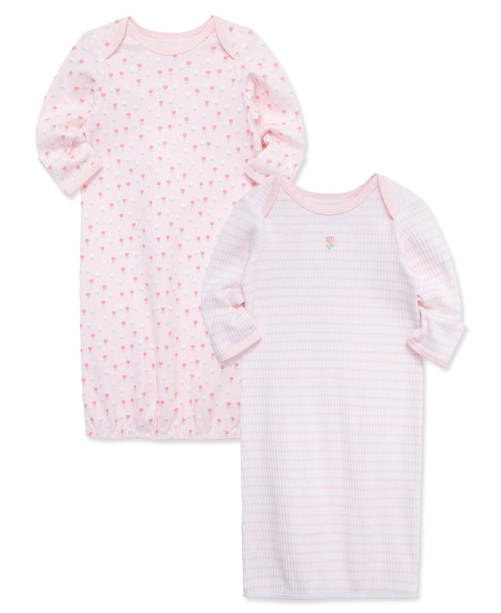 - Tulips and bunnies embellish this newborn baby girls' gowns 2-pack. Made from premium organic cotton, these are a gentle choice for frequent naps and diaper changes!