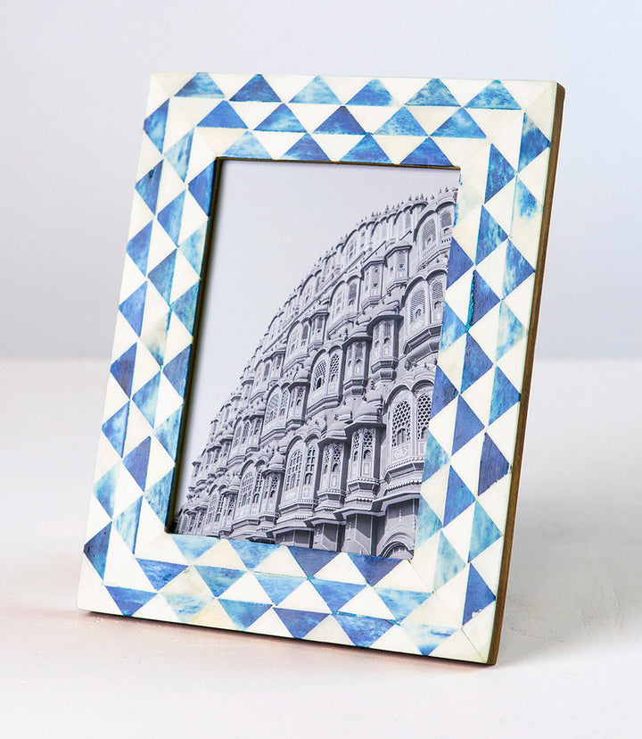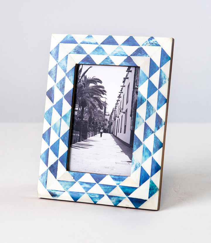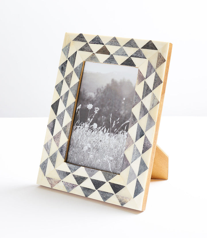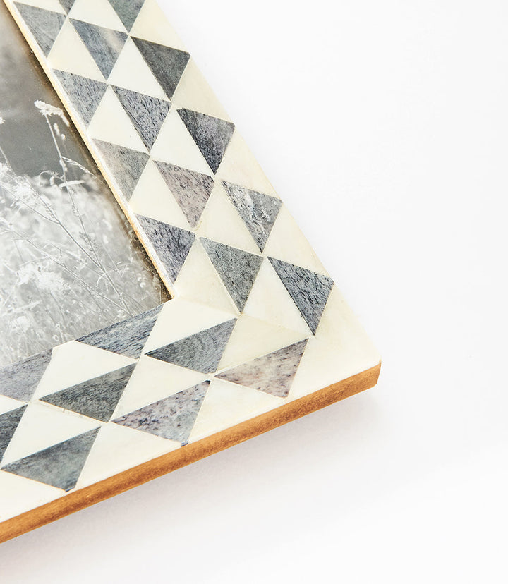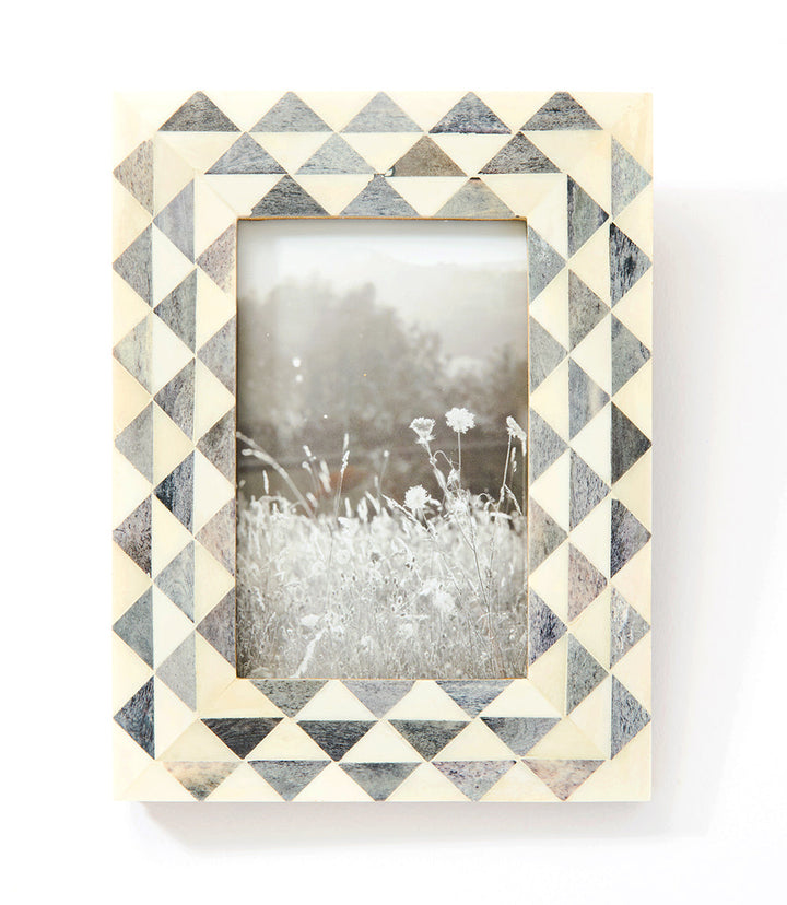 A triangle wave design displays clean and elegant pattern on a handcrafted ethically sourced bone frame.