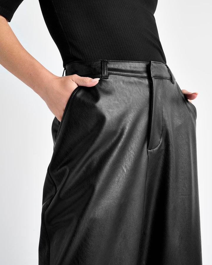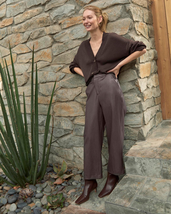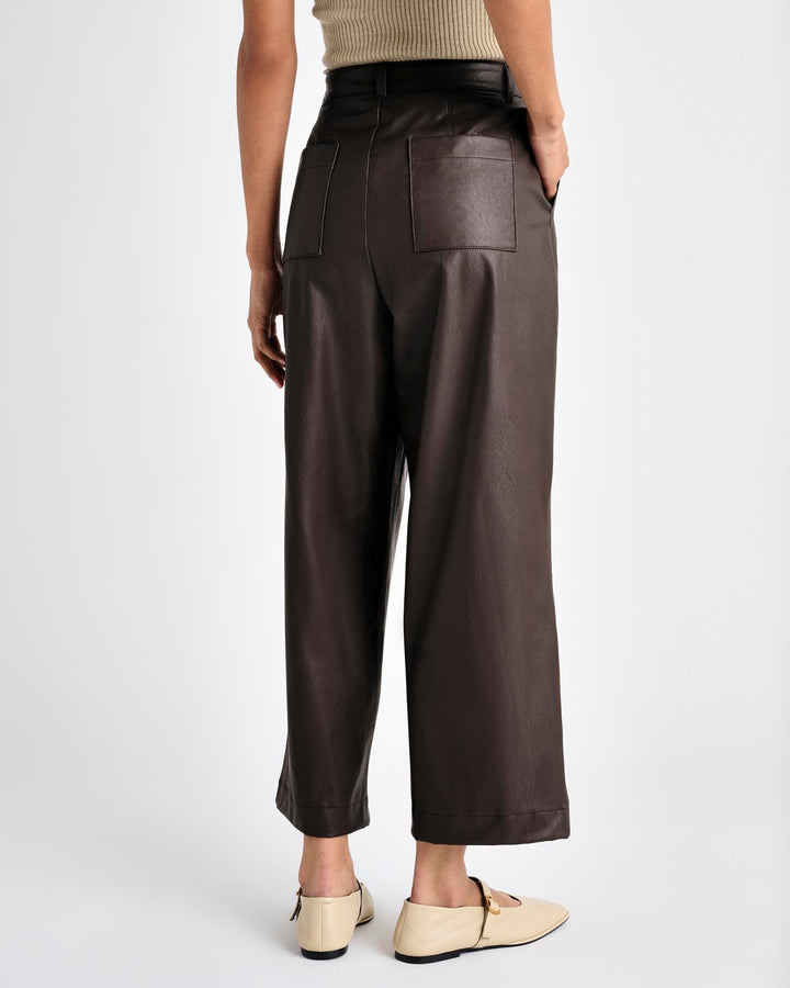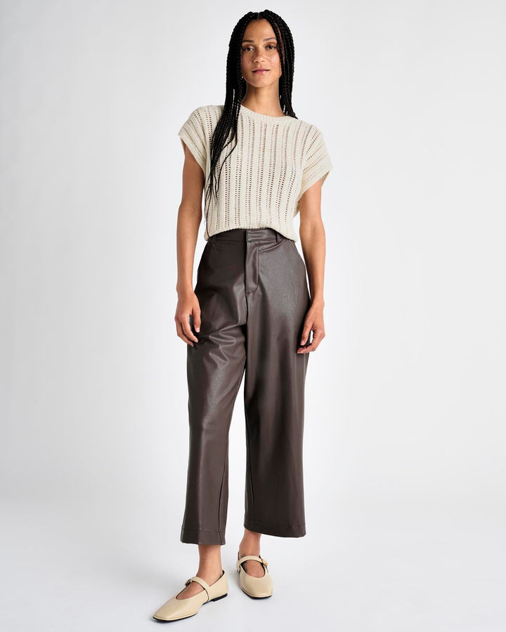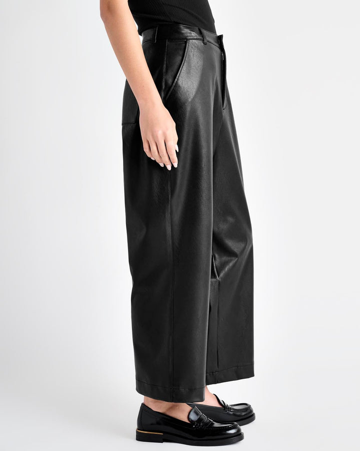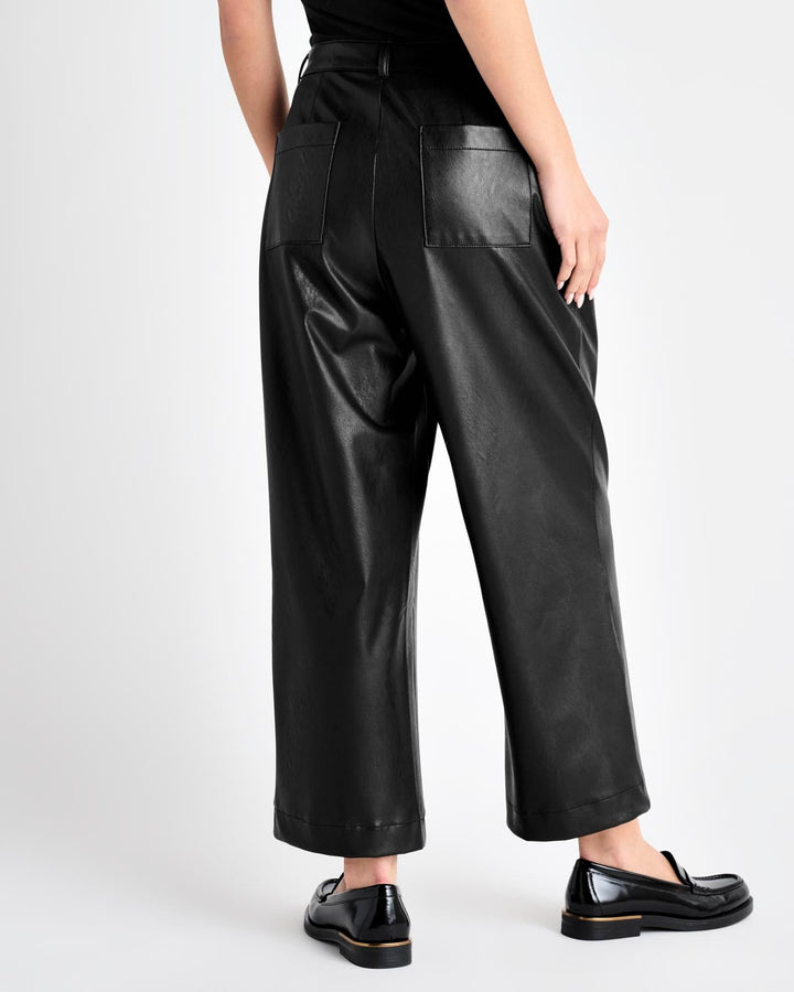 Our Vegan Leather Ankle Trouser feels polished and never stuffy. Unlike your average 9-5 trouser, this one's cut from a smooth vegan leather with a cozy (and elevated) wide-leg silhouette. Its zip fly and hook closures are topped with belt loops for the perfect fit, and that ankle-length hem highlights any shoe. Top with a tee, top with a sweater. Either way, create endless fall looks for every day of the week.