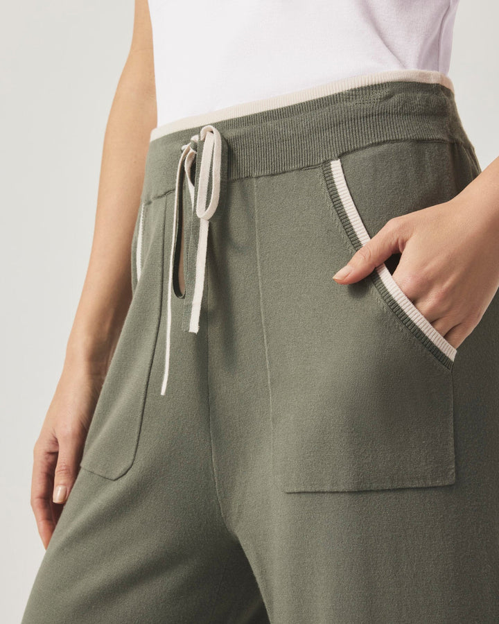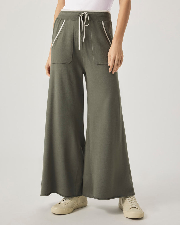 This version of our Veronica Crop Wide Leg Pant is made with a contrast trim along the pockets and waistline for an added pop. Crafted from a sweater knit, it features a flared leg for flowy movement with every step. Topped with a drawstring waist, functional pockets and a rolled hem. On-the-go comfort never looked better.