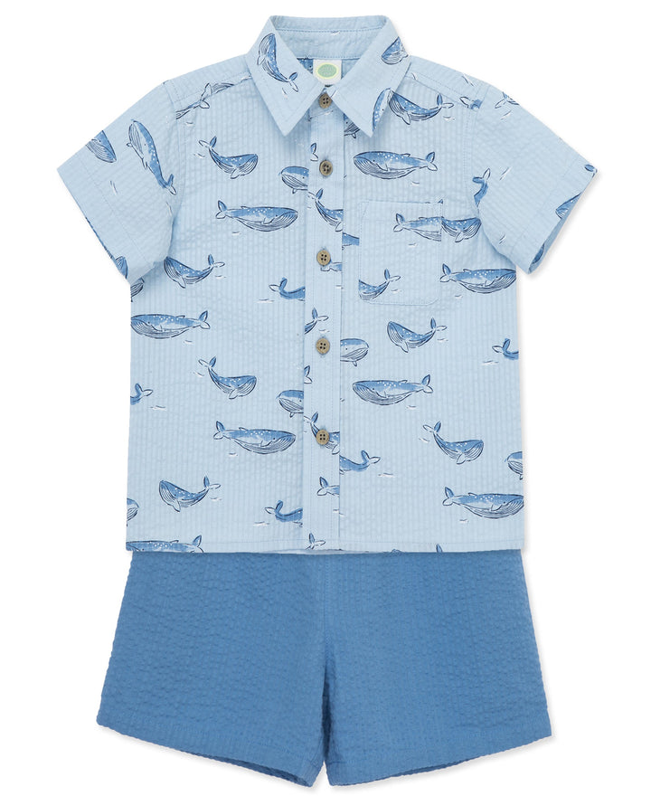 - Whale-hello! This infant boys' 2-piece woven cotton short set is the perfect outfit for your little boy this summer! The set includes a short-sleeve button-down and coordinating shorts.