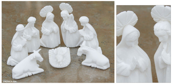 White Christmas Huamanga Stone Nativity Scene