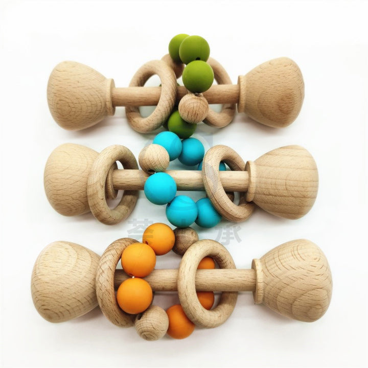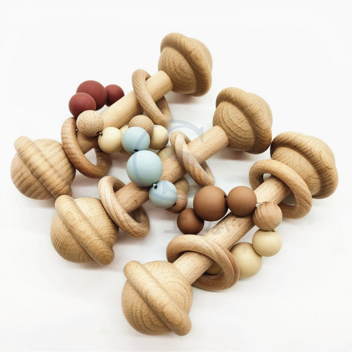 The wooden rattle was made from natural beech wood. The wooden rings around it produce a natural sound and are easy for little baby hands to grasp. Even if a little nibbling fun is required, the balls made of medical silicone are ideal for stimulating the gums when teething.